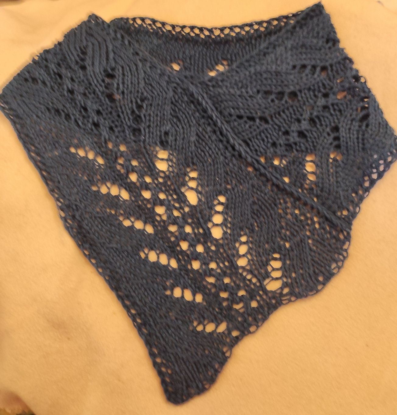 Es wurde nicht als normales Dreieckstuch gearbeitet ,sondern es wurden seitlich Rechtecke daran gestrickt, die die Arme warm halten. So sitzt es sich abends kuschelig am Lagerfeuer.